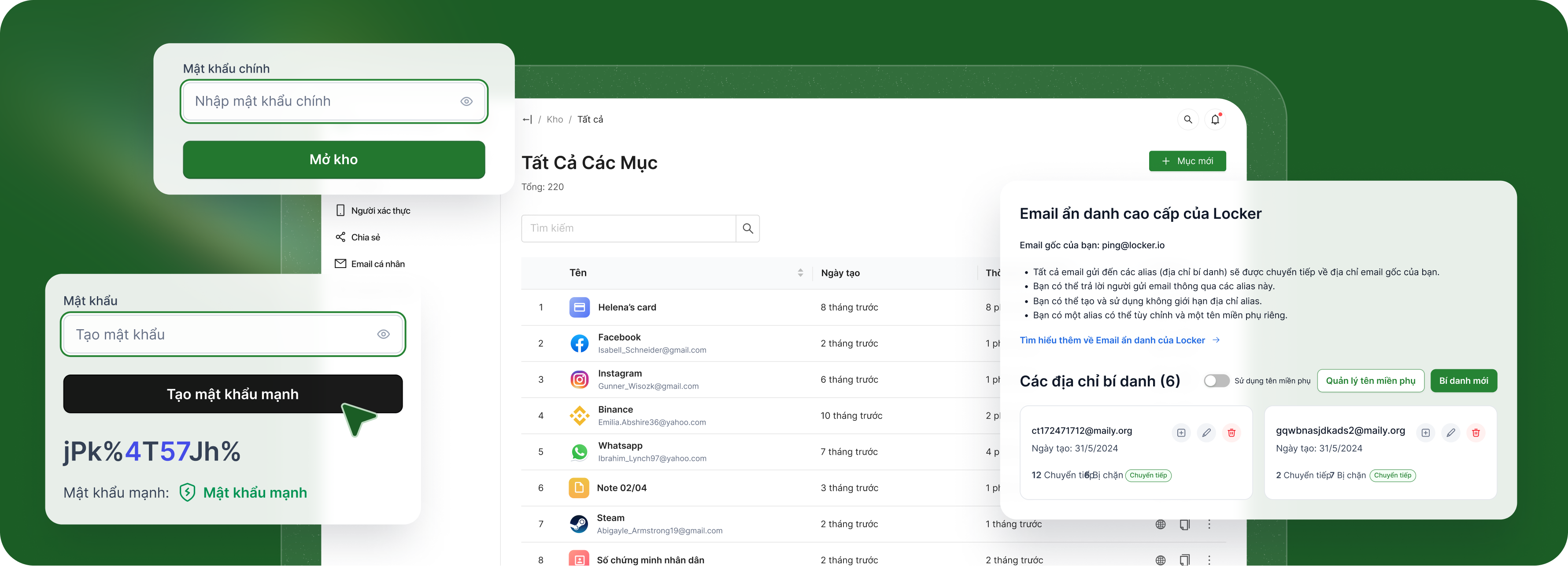 + Chia sẻ an toàn: gửi mật khẩu và dữ liệu nhạy cảm cho bạn bè, đồng nghiệp hoặc bất kỳ ai, kể cả khi họ không dùng Locker.