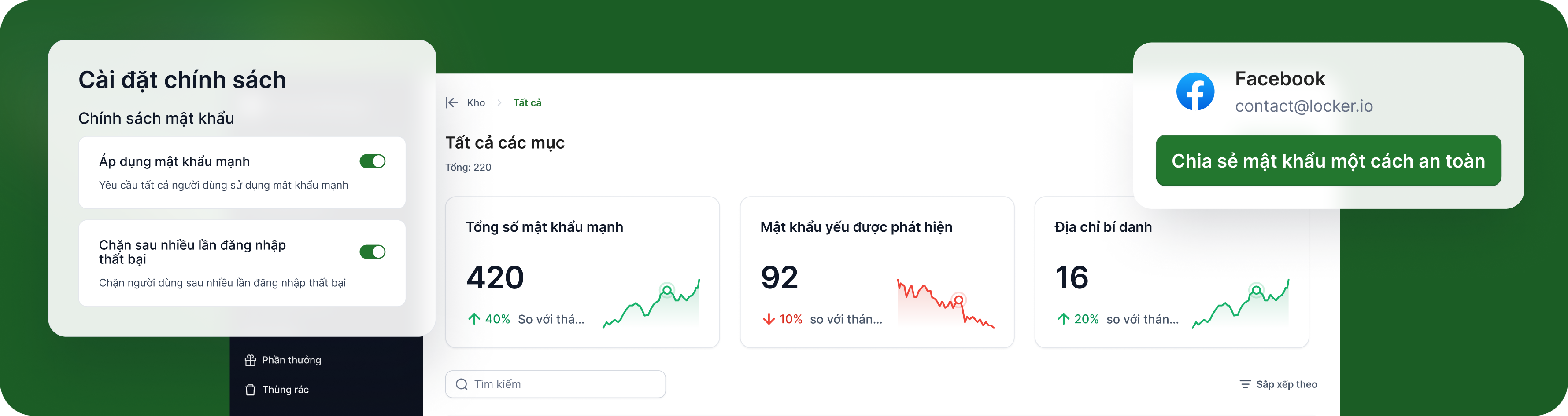 Phần mềm quản lí mật khẩu Locker giúp đơn giản hóa và tăng cường bảo mật việc lưu trữ, quản lý và chia sẻ mật khẩu cùng dữ liệu nhạy cảm – dù cho cá nhân hay doanh nghiệp.